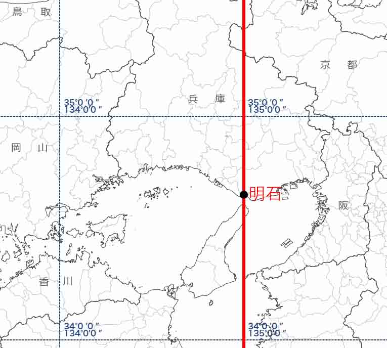 そこで、日本では兵庫県明石市を通る東経135°を日本国内共通の時刻とするようにしました。