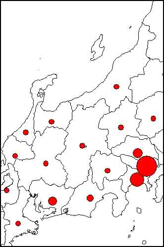 中部地方の人口密度