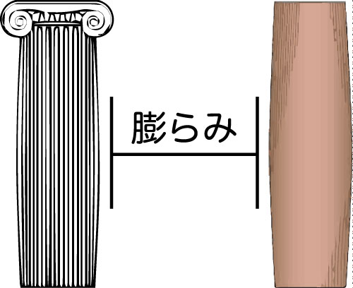 パルテノン神殿の柱(左)・法隆寺の柱(右)