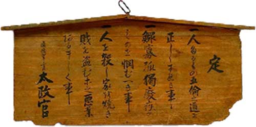 国民の5つの心得を示す高札