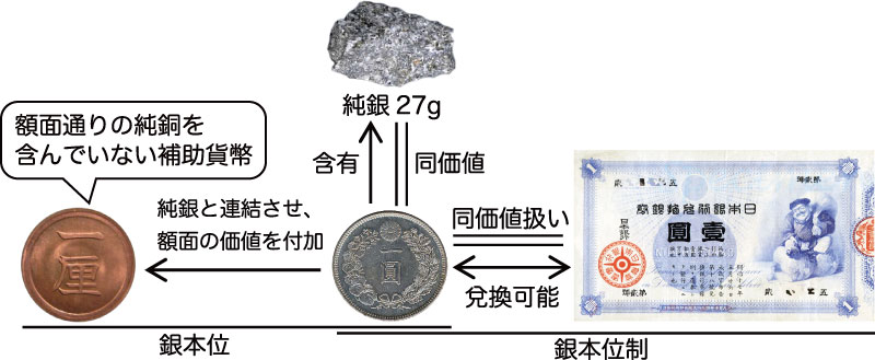 貨幣への信用を「銀」の希少価値で支える貨幣制度銀本位、これに基づく兌換制度銀本位制がここに確立された。
