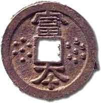 流通は極めて限定的で、実際は厭勝銭(まじないの銭)に使用されました。