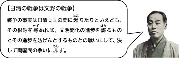 朝鮮半島を狙うロシアの動きは、日本に危機感を与えました。一方、朝鮮は清の属国という現状に甘んじ、対応策を講じませんでした。日本は朝鮮を清から独立させようと日清戦争を始めました。日清戦争では、西洋の見守るなかで日本が清と違って「文明国」であるかが試されました。その意味で、日清戦争は「文明国の入学試験」でもありました。