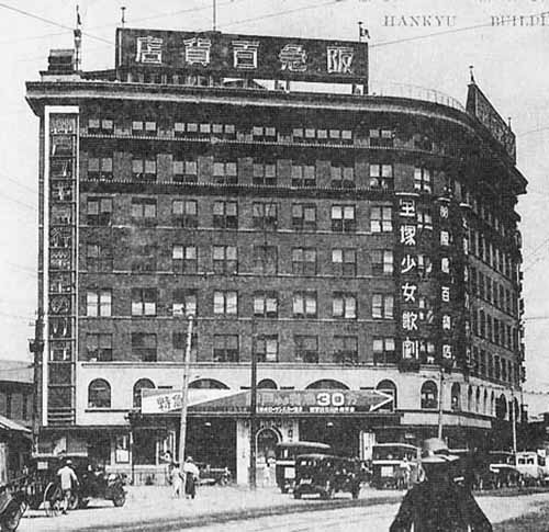 1929年、阪急電鉄社長の小林一三は、私鉄の発着駅にデパートを付属させた阪急百貨店を開業しました。地下2階、地上8階という、当時では群を抜いた規模の百貨店で、大衆に向けての夢の集大成として世界初の試みでした。小林は、1913年に組織し発展させた宝塚少女歌劇団なども経営しており、大衆の夢をふくらませ、そして確かな実りへと導きました。