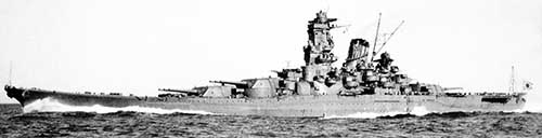軍縮条約失効後に建造された戦艦で、今日においても排水量・主砲口径ともに世界最大級。全長263m。威力を発揮できないまま、沖縄戦への出撃の途中で轟沈。