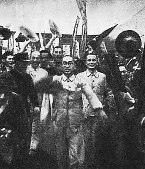 1945年10月、GHQの指示で出獄した徳田球一を中心に、日本共産党が合法政党として活動を開始しました。