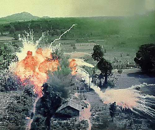 アメリカが、南ベトナムを支援して北への爆撃など軍事介入を始め、中ソが、北ベトナムと南ベトナム解放民族戦線を支援した戦争