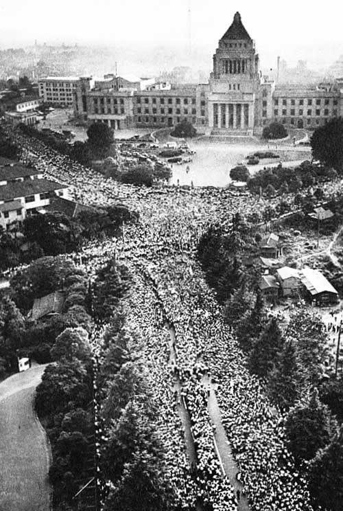 1960年5月、条約批准が衆議院で可決されると、反対運動は一挙に高揚しました。