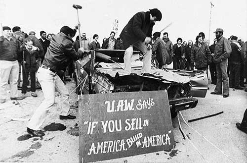 アメリカでは、日本製自動車を叩き壊すなどのジャパン=バッシングも起こりました。
