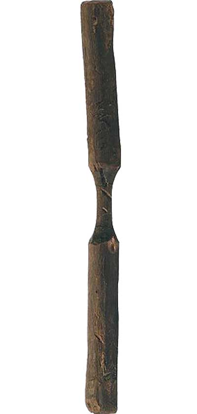 田植え作業などには、足が水田に沈みこむのを防ぐ田下駄を着用しました。