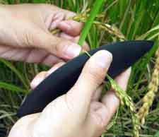 穂は石包丁による穂首刈りで収穫し、木臼・竪杵