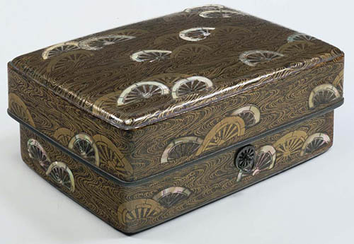 貝殻の一部を薄く剥ぎ、種々の形に切って漆器に埋め込む技法