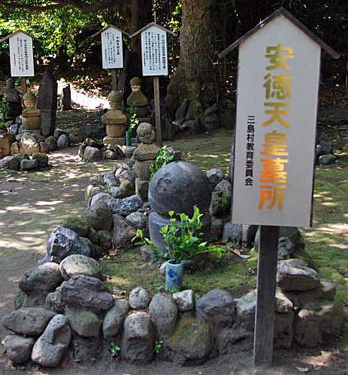 (鬼界ヶ島!?)に住み、戦後に現れた他の自称天皇とは、一線を画す風格をもっていました。子孫かどうか真偽は不明ですが、硫黄島には安徳が島で最期を迎えたとの伝説があります(下図:安徳の墓)。幼年で壇ノ浦に入水した安徳には、生存説が創られるほどの魅力があったのでしょう。