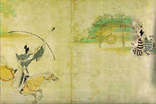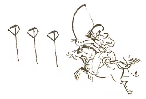 馬上の弓術を練る武芸が重要視され、下図の武芸3つを騎射三物と総称します。