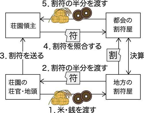 貨幣経済が浸透すると、①高額の資金を一度に用意することや、②遠方へ高額の送金をすることが度々生じるようになりました。