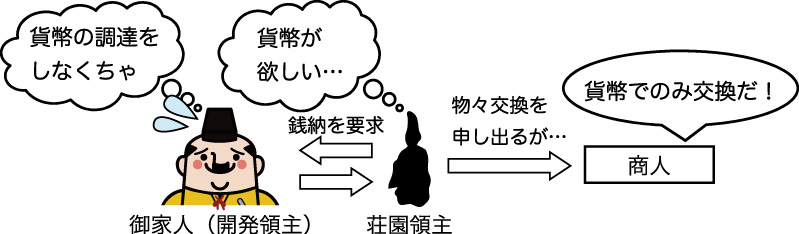 荘園領主が年貢などの負担を銅銭で納める代銭納を要求しました。