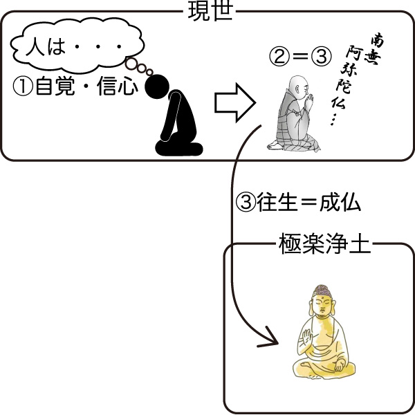 - 人間の内実を自覚して「阿弥陀仏」への信心をもつ。