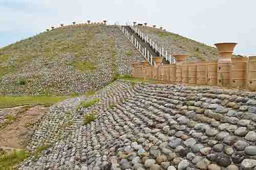 - 斜面に葺石、丘の部分に土製の焼き物埴輪