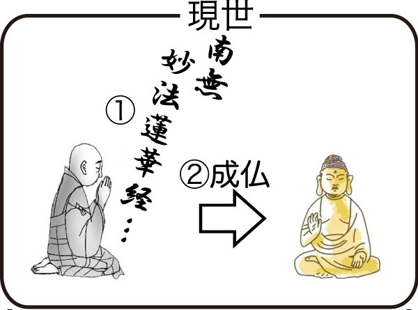 日蓮は、『法華経』のみが釈迦の教えを正しく伝え、末法の世でも効力をもつと考えました(下の①②)。