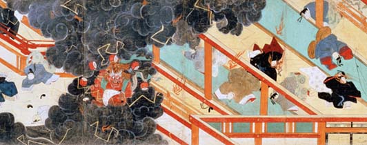 新たに台頭した武士の生活を伝える絵巻、戦乱を体験した人々の心に訴える絵巻、布教を目的に祖師の活躍を伝える絵巻(絵伝)が登場しました。