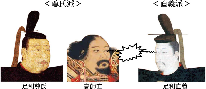 直義と、尊氏の支持を得た師直との激突に端を発し、幕府内部に留まらず、南朝・北朝の対立も巻き込んだ争乱