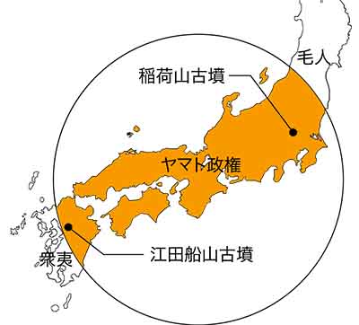 日本列島で製作された江田船山古墳(熊本)の鉄刀、稲荷山古墳(埼玉)の鉄剣の銘文に漢字が見られます。