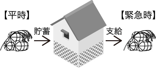 - 飢饉用米穀の貯蔵倉社倉・義倉を各地に設置し、そこに米穀を蓄える政策囲米