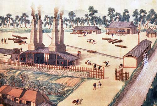 - 洋式軍事工業をいち早く導入し、溶鉱炉の一種反射炉の築造と大砲の鋳造