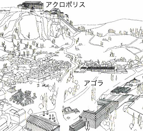 アクロポリスのふもとにあり、市場や集会が開かれる公共広場