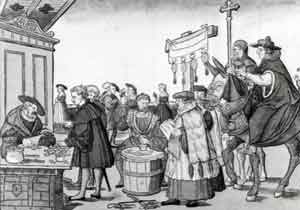 贖宥状の購入は、教会にお金を寄付する善行であり、これを積めば受けるべき罰を赦されるとされました。