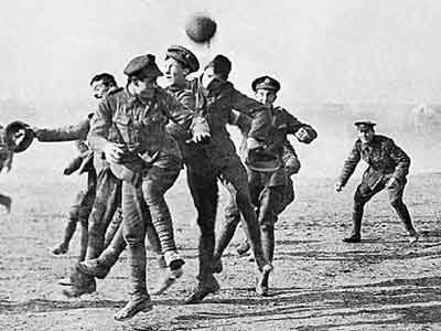 1914年12月25日、世界的なドイツのテノール歌手キルヒホフが、ドイツ兵の慰問に西部戦線を訪れました。彼が「Stille Nacht(きよしこの夜)」を歌うと、歌声に気づいたフランス兵士が賞賛を送りました。両軍の兵士の緊張は自然と解け、塹壕から這い出て祝い合いました。交流は別所でも起こり、イギリス兵とドイツ兵のサッカーの親善試合もありました。終戦までに1度だけ起きた奇跡的出来事でした。